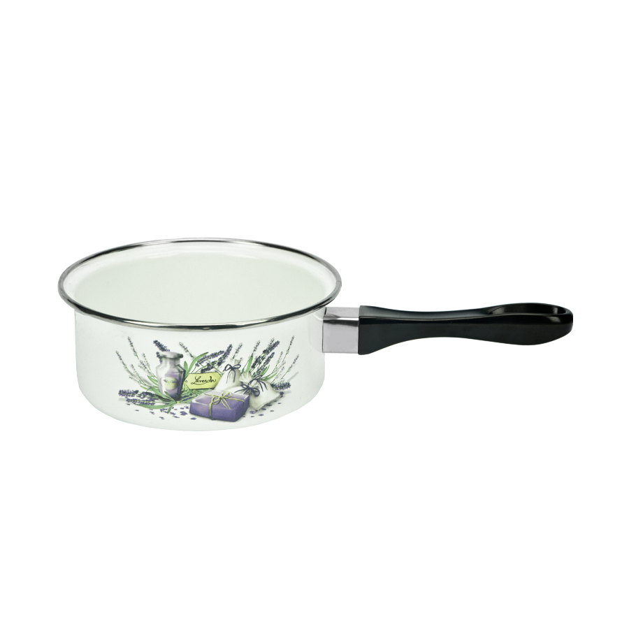 Rondel emaliowany o średnicy 16 cm, w kolorze białym, z grafiką lawendy. Pomocny w każdej kuchni. Dzięki najwyższej jakości wykonania posłuży na lata zachwycając swoim wyglądem. Przypadnie do gustu każdej Pani domu.