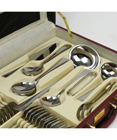 Elegancki, 72-elementowy zestaw sztućców w walizce z linii Aria. Niezastąpione w każdym domu, idealne do użytku domowego, jak i imprezy w gronie rodziny i przyjaciół.