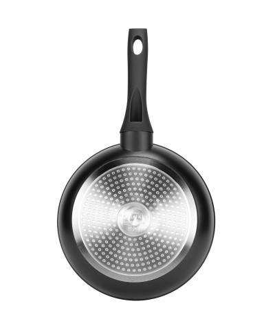 Patelnia posiadają rączkę wykonaną z odpornego na wysokie temperatury BAKELITU pokrytego silikonową powłoką w kolorze czarnym. Dodatkowo ciekawy design sprawia, że patelnia będzie po prostu ładnie się prezentować w Państwa kuchni.