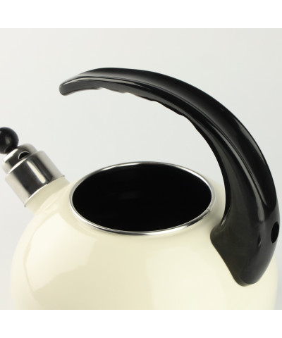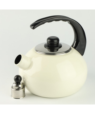 Emaliowany czajnik w kolorze kremowym i pojemności 2,5 l, który pozwoli zagotować wodę na aromatyczną herbatę i pobudzającą kawę. Posiada zdejmowaną pokrywkę, nienagrzewającą się rączkę i gwizdek informujący o zagotowaniu wody. Przeznaczony do każdego rodzaju kuchenki.