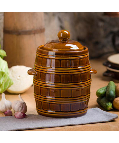 Praktyczna beczka została wykonana z wysokiej jakości ceramiki. Kamionka o pojemności 8L idealnie nadaje się do kiszenia produktów takich jak: ogórki, kapusta.