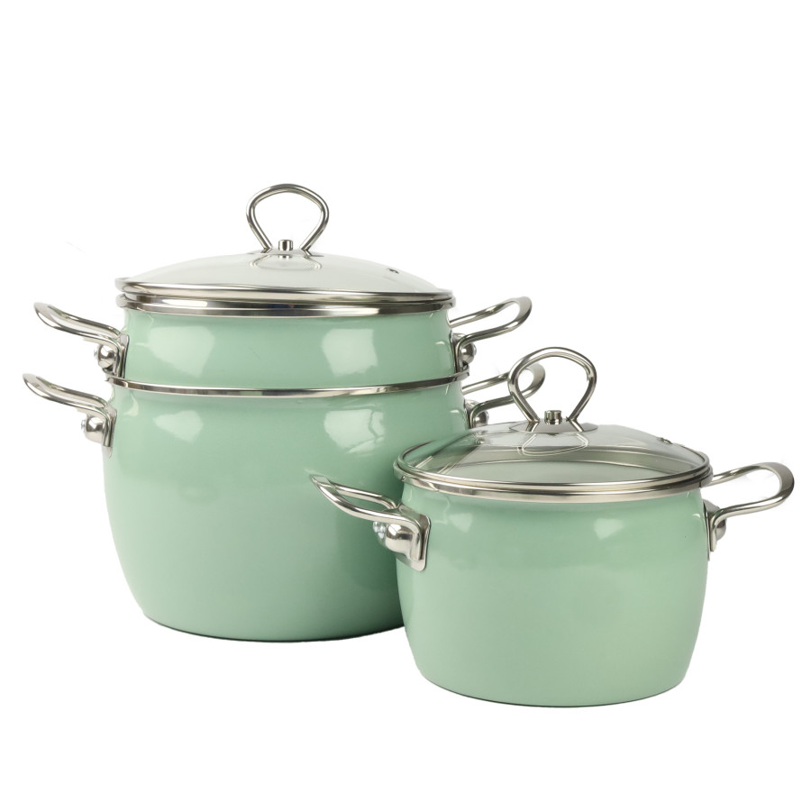 Zestaw garnków emaliowanych Maryna zielone 2,3L+4L+5L
