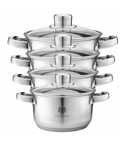 Elegancki i funkcjonalny 8-elementowy zestaw garnków ze stali nierdzewnej marki KARL HAUSMANN. Niezastąpiony w każdej kuchni. Dzięki najwyższej jakości wykonania posłuży na lata zachwycając swoim wyglądem i praktycznością.