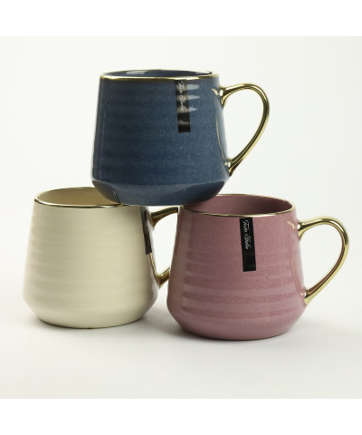 Stylowy kubek porcelanowy o pojemności 570 ml w głębokim granatowym odcieniu z eleganckim złotym uchwytem i wykończeniem to połączenie nowoczesnego designu z nutą luksusu – idealny do codziennej kawy, herbaty lub jako wyjątkowy prezent.