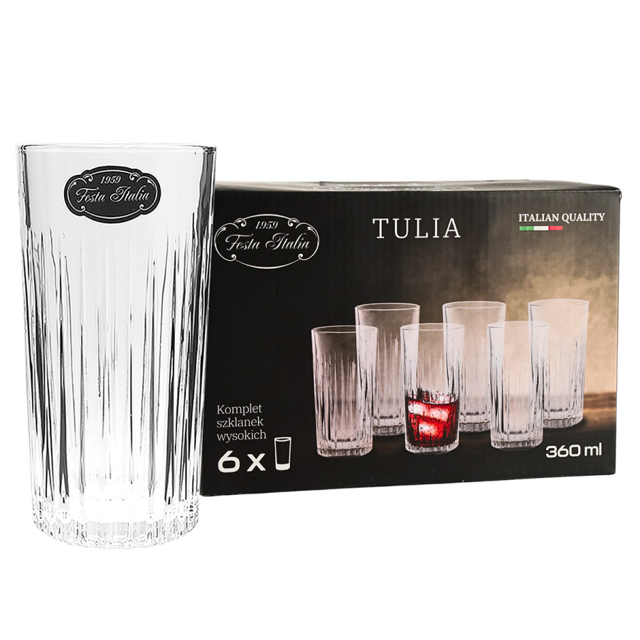 Komplet 6 szklanek wysokich 360 ml TULIA